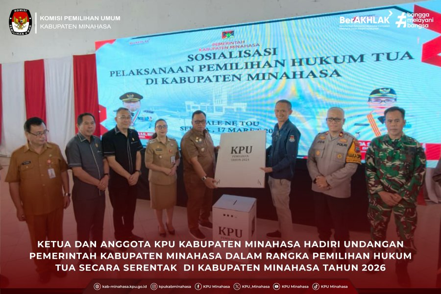 Dalam rangka Pemilihan Hukum Tua Secara Serentak di Kabupaten Minahasa Tahun 2026 pada Selasa (17/03/2026), Ketua dan Anggota KPU Kabupaten Minahasa hadiri undangan Pemerintah Kabupaten Minahasa yang bertempat di Gedung 'Wale Ne Tou Minahasa' Tondano. #KPUMelayani ....