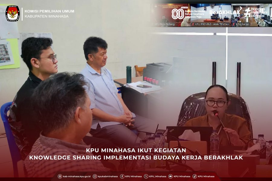 KPU Minahasa mengikuti kegiatan Knowledge Sharing Implementasi Budaya Kerja BerAKHLAK yang diselenggarakan secara daring oleh Sekretariat Jenderal KPU RI, pada Kamis (25/09/2025).