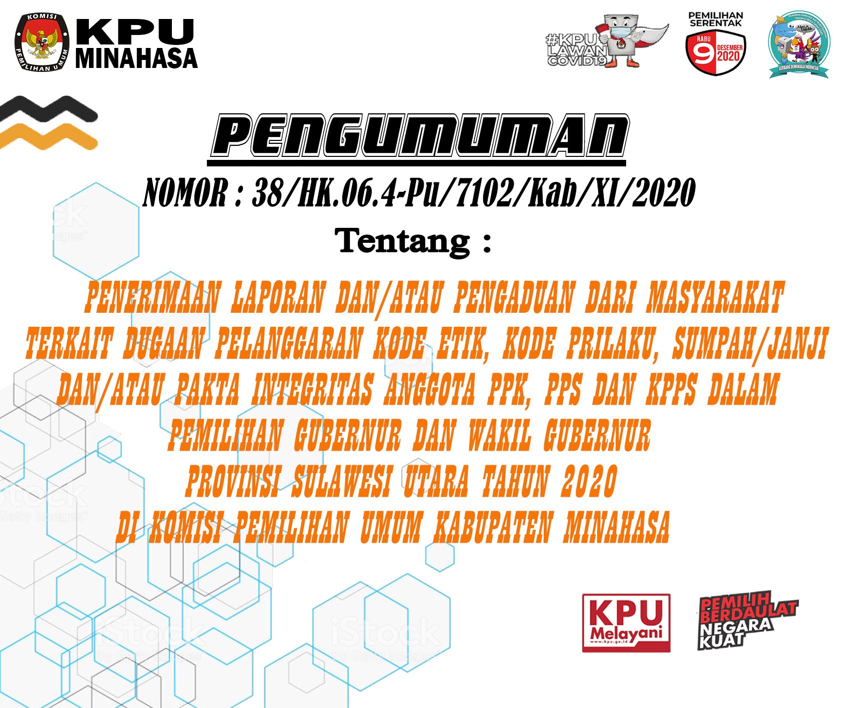Upacara diikuti oleh ketua dan anggota kpu kabupaten minahasa, sekretaris, kasubag dan seluruh staf kpu kabupaten minahasa. Upacara ini dipimpin oleh steven mamengko. Sebagai inspektur upacara, ketua kpu kabupaten minahasa bpk. Lord arthur ch. E. Malonda, yang dalam amanatnya menyampaikan