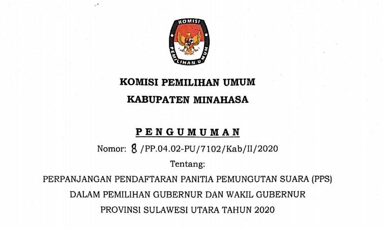 Pengumuman Perpanjangan PPS Pilgub 2020 Selasa, 25 Februari 2020 00:00 Download Pengumuman Perpanjangan PPS Pilgub 2020 Baca Selengkapnya