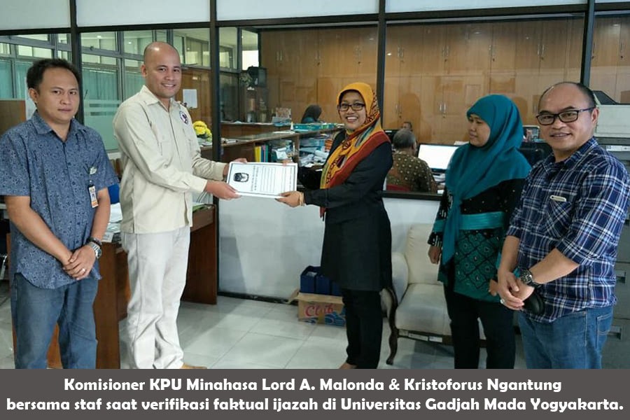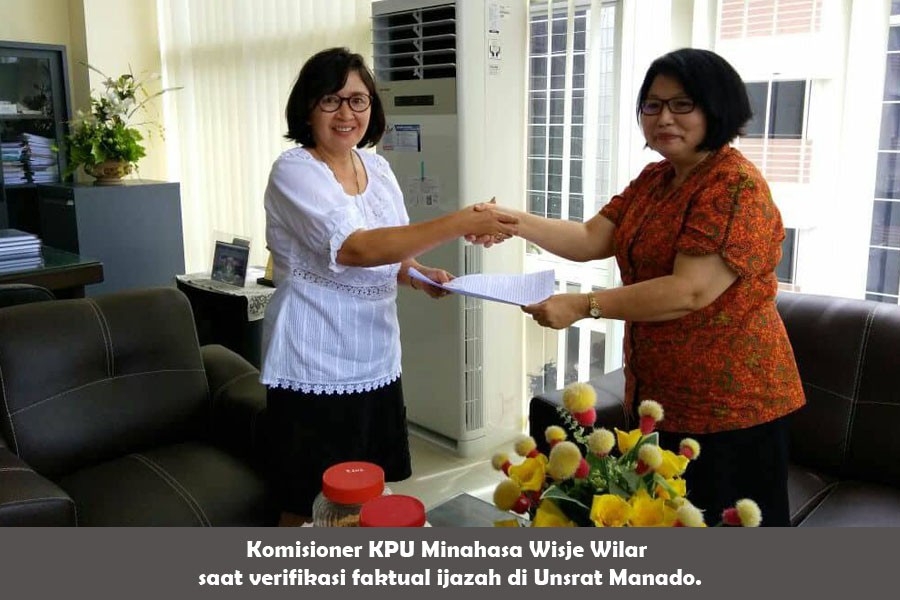 Manado - Komisi Pemilihan Umum (KPU) Kabupaten Minahasa, Rabu (24/1) siang, mendatangi Universitas Negeri Sam Ratulangi (Samrat) Manado, dalam rangka melakukan verifikasi faktual terhadap keabsahan Ijazah Sekolah Menengah Atas (SMA), Strata satu (S1) dan Magister (S2) bakal calon (Balon) wakil Bupati Minahasa periode 2018-2023, Ir. Royke Oktavianus Roring, M.Si Tim verifikasi KPU Minahasa yang dipimpin komisioner devisi umum anggaran logistik, Dra. Wiesje Wilar, M.Si mendatangi Fakultas Teknik (Fatek) dan Pasca Sarja sekitar pukul 12.30 Wita dan diterimah oleh WD 1, Ir. Steenie E. Wallah, M.Si, Ph.D diruang kerjanya. Dalam verifikasi tersebut, Wallah menjelaskan, keabsahan Ijasah S1 Royke Oktavianus Roring resmi terdaftar dan mempunyai nomor register di Fatek. "Memang benar beliau alumni Fatek dan keabsahan Ijazahnya falid dan mempunyai nomor registrasi," terangnya. Sedangkan untuk keabsahan Ijazah S2, Direktur Pasca Sarjana Unsrat melalui pejabat Sekretariat, Stenly Jacobis membenarkan Roring merupakan lulusan Magister di Universitas Sam Ratulangi Manado. "Roring merupakan masiswa pasca sarjana unsrat yang terdaftar tahun 1996. Dan dia lulus 11 September 1999. Inti keabsahan Ijazah adalah nomornya tertulis jelas dan legalisir," pungkasnya. Selain Unsrat, tim verifikasi juga mendatangi Sekolah Menengah Atas (SMA) Negeri 2 Manado untuk mencari keabsahan Ijazah Careig Naichel Runtu (CNR). Menurut Kepala Sekolah SMA Negeri 2 Manado, Drs. Butje Runtu diwakili kepala tata usaha Serly Onibala membenarkan, dia (CNR, red) lulusan di sekolah tersebut. "Di data, CNR masuk tahun1995 dan lulus 1998. Jadi keabsahan Ijazahnya memang asli. Selain ada legalisirnya, nomor Ijazahnya juga terdaftar," singkat Onibala. Sementara Komisioner Wiesje Wilar yang didampingi beberapa staf KPU dan anggota Media Center mengatakan, verifikasi Ijazah bakal calon Bupati dan wakil, untuk memastikan secara langsung keabsahan atau keaslian Ijazah dari semua Balon. "Ini adalah salah satu tahapan yang harus dilakukan KPU, guna memastikan keabsahan Ijazah para Balon. Dan ini merupakan syarat verifikasi yang kita lakukan, Nama perguruan tinggi/Sekolah, alamat perguruan tinggi/Sekolah, NIK, Nomor Seri Ijazah dan catatan pihak perguruan tinggi," jelasnya. (admin)