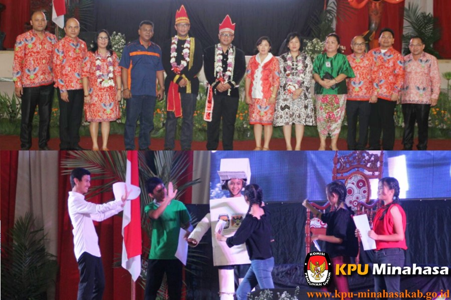 Di hadapan KPU RI Komisioner KPU Minahasa Bacakan Puisi Epilog Seni ternyata dapat menjadi media penyampaian pesan pendidikan politik dan demokrasi atau pendidikan pemilih (voters education) untuk kepentingan Pemilu atau Pilkada. Hal ini dimanfaatkan dengan optimal oleh KPU Kabupaten Minahasa – Sulawesi Utara. Implementasi pendidikan demokrasi melalui pembacaan puisi, tersaji dalam rangkaian acara Sosialisasi Pendidikan Pemilih Pentas Seni Budaya yang dirangkaikan dengan Sosialisasi Tahapan Pemilihan dan Launching Pilkada Minahasa 2018 yang digelar akhir pekan lalu (15/9) di Gedung ‘Wale ne Tou Minahasa’ Tondano. Lima Komisioner KPU Minahasa secara bergantian membacakan bait puisi berjudul “MENATAP PILKADA KREDIBEL DAN AMAN”. Puisi yang ditulis Ketua KPU Minahasa, Meidy Yafeth Tinangon tersebut dibacakan sebagai bagian epilog atau bagian penutup pada karya sastra teaterikal bertajuk Demokrasi Indonesia Awalnya dari Minahasa dengan judul naskah drama kolosal: “Mencari Pemimpin”. Di hadapan Ketua KPU RI Arief Budiman dan Anggota KPU RI, Hasyim Asyari serta tamu dan undangan lainnya, Ketua KPU Minahasa, Meidy Yafeth Tinangon mengawali pembacaan puisi tersebut diikuti empat komisioner lainnya masing-masing: Wiesje Wilar, Lord Arthur Malonda, Kristoforus Ngantung dan Dicky Paseki. Bait terakhir puisi dibacakan secara bersama-sama. Berikut isi puisi tersebut. Minahasa … pioner demokrasi Indonesia…. Tiada demokrasi sejati dan substansial tanpa kebenaran, kejujuran dan keadilan Tak perlu sempurna tuk wujudkannya… Hanya butuh setitik komitmen anak negeri… Komitmen kita semua ….. Karena demokrasi adalah Kita !!! Demokrasi ….. adalah seni merangkai beda… Mari bersatu meskipun beda warna… Tetap saudara dan sahabat meski beda pilihan… Tak perlu uang tuk wujudkannya… Hanya butuh ketulusan nurani… Pilkada … adalah prosedur demokrasi untuk kepentingan rakyat…. Tiada Pilkada tanpa rakyat… Mari berkompetisi tuk puaskan kehendak rakyat… Mari bersaing dengan sehat… Tak perlu curang tuk wujudkannya… Hanya butuh komitmen petarung sejati… Pilkada Kredibel ….. adalah pilkada yang terpercaya… Terpercaya karena pelayanan berbalut transparansi.. Terpercaya karena hukum jadi panglima… Terpercaya karena keadilan, kejujuran dan kesetaraan.. Tak perlu sempurna untuk mewujudkannya… Hanya butuh integritas…. Pilkada adalah Pesta Demokrasi… Mari berpesta dengan Aman dan damai Mari bergandengan tangan dalam perbedaan… Mari hormati aturan… Jauhkan hina dan fitnah… Tak perlu amarah tuk wujudkannya… Hanya butuh kendalikan diri dan saling menghargai …… Mari segenap tou*) Minahasa, bersama kita buktikan kedewasaan berdemokrasi sebagai daerah pioneer**) demokrasi Indonesia… Mari wujudkan Pilkada yang bermartabat….!!! PILKADA MINAHASA YANG KREDIBEL DAN AMAN !!! Catatan: *tou (bahasa lokal Minahasa yang berarti orang / manusia) *Pioner/pionir = penganjur; pelopor; perintis jalan; pembuka jalan