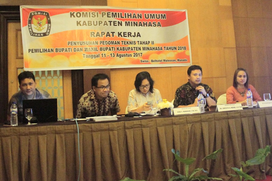Dalam hajatan yang dibuka Ketua Divisi Hukum KPU Sulut, DR. Ardiles Mewoh, SIP, MSi, KPU Minahasa mengundang sejumlah elemen untuk turut memberikan masukan terhadap draft keputusan tentang pedoman teknis Pilbup Minahasa.