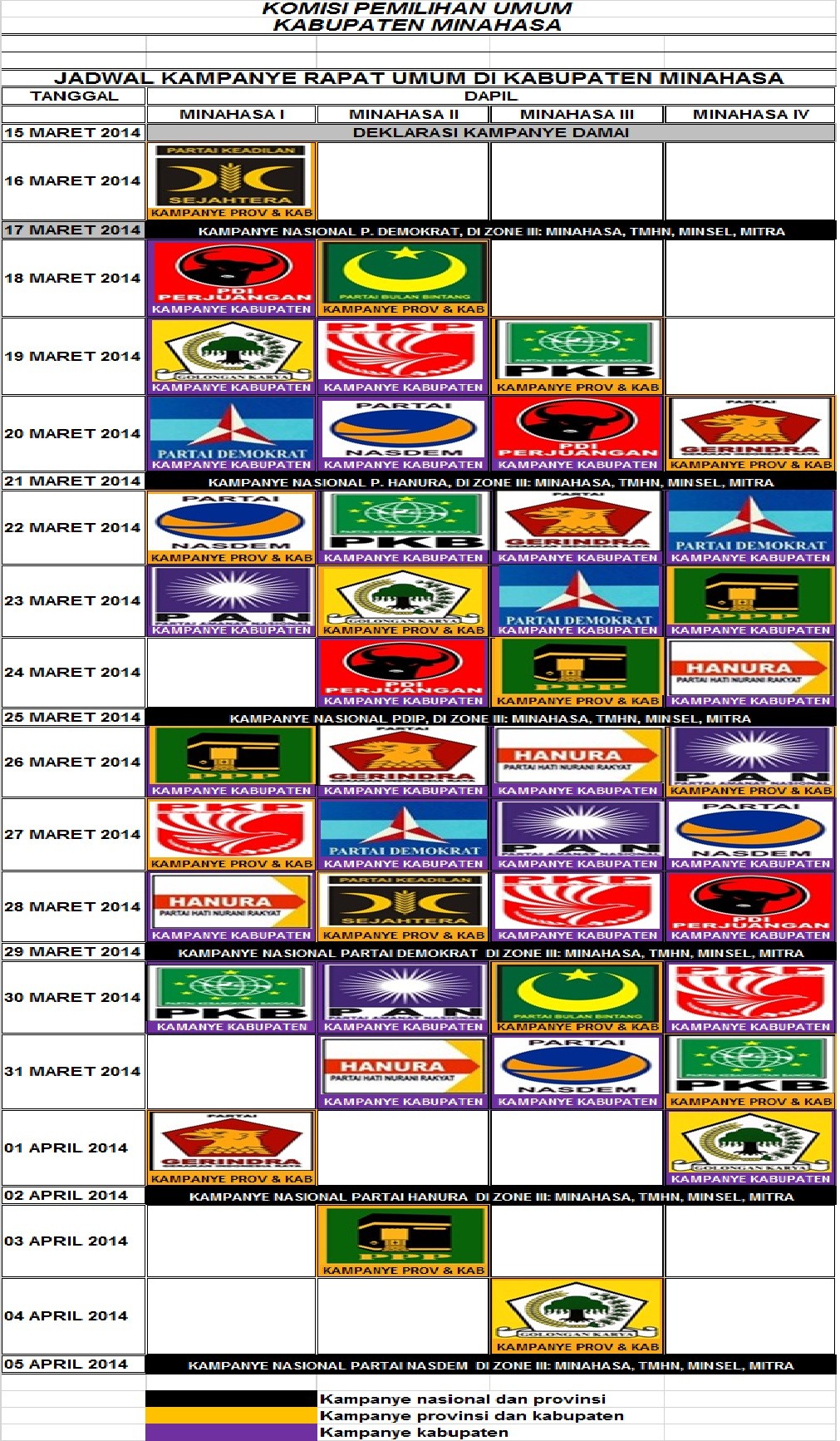Pelaksanaan Pemungutan Suara di TPS dimulai pukul 07.00 Wita. Sementara penghitungan suara dimulai pukul 13.30 Wita. Meskipun terdapat pertanyaan yang diajukan saksi, namun proses di TPS bisa berlangsung lancar. TPS yang jumlah pemilihnya 350-500 pemilih, proses penghitungannya memang lebih lama dari TPS yang pemilihnya di bawah 300 orang. Sejak malam tanggal 9 April 2014 hingga pagi hari ini, 10 April 2014, PPK telah mengumpulkan formulir model C, C1 dan lampiran C1 dari TPS. Segera setelah mengumpulkannya, KPU langsung mengumpulkan form C1 di PPK, melakukan proses scanning dan dikirim ke KPU RI serta bakal di upload ke website KPU Minahasa.
