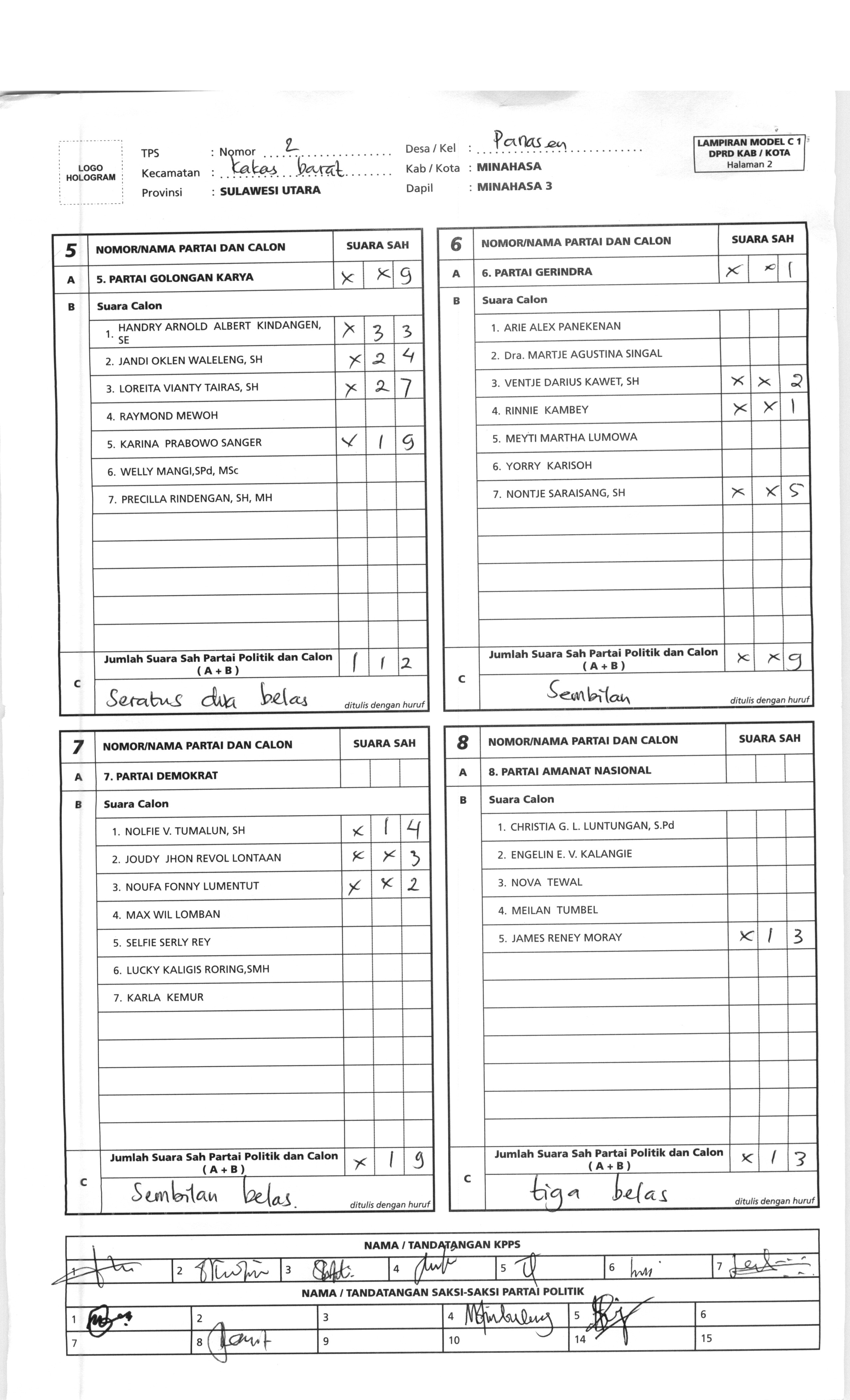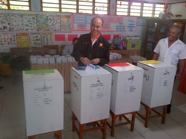 Warga Negara Indonesia yang memenuhi syarat sebagai pemilih, 9 April kemarin menggunakan hak pilihnya di 701 TPS di Kabupaten Minahasa. Ketua KPU Minahasa, Meidy Tinangon menggunakan hak pilihnya di TPS 5 Kelurahan Kiniar Tondano Timur.