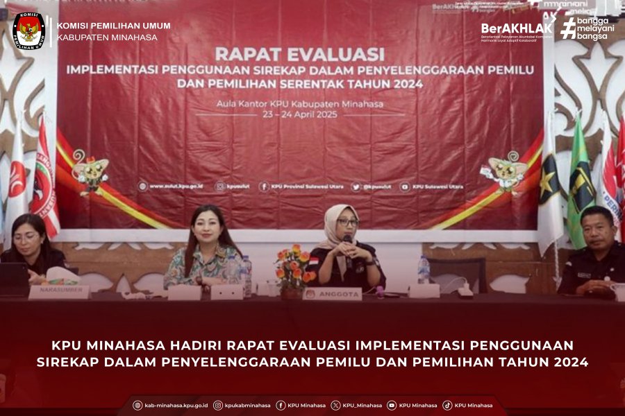 Minahasa, kab-minahasa.kpu.go.id – Komisi Pemilihan Umum (KPU) Kabupaten Minahasa Menghadiri Rapat Evaluasi Implementasi Penggunaan Sirekap dalam Penyelenggaraan Pemilu dan Pemilihan Serentak Tahun 2024, yang berlangsung di Aula Kantor KPU Kabupaten Minahasa (23-24/5/2025).