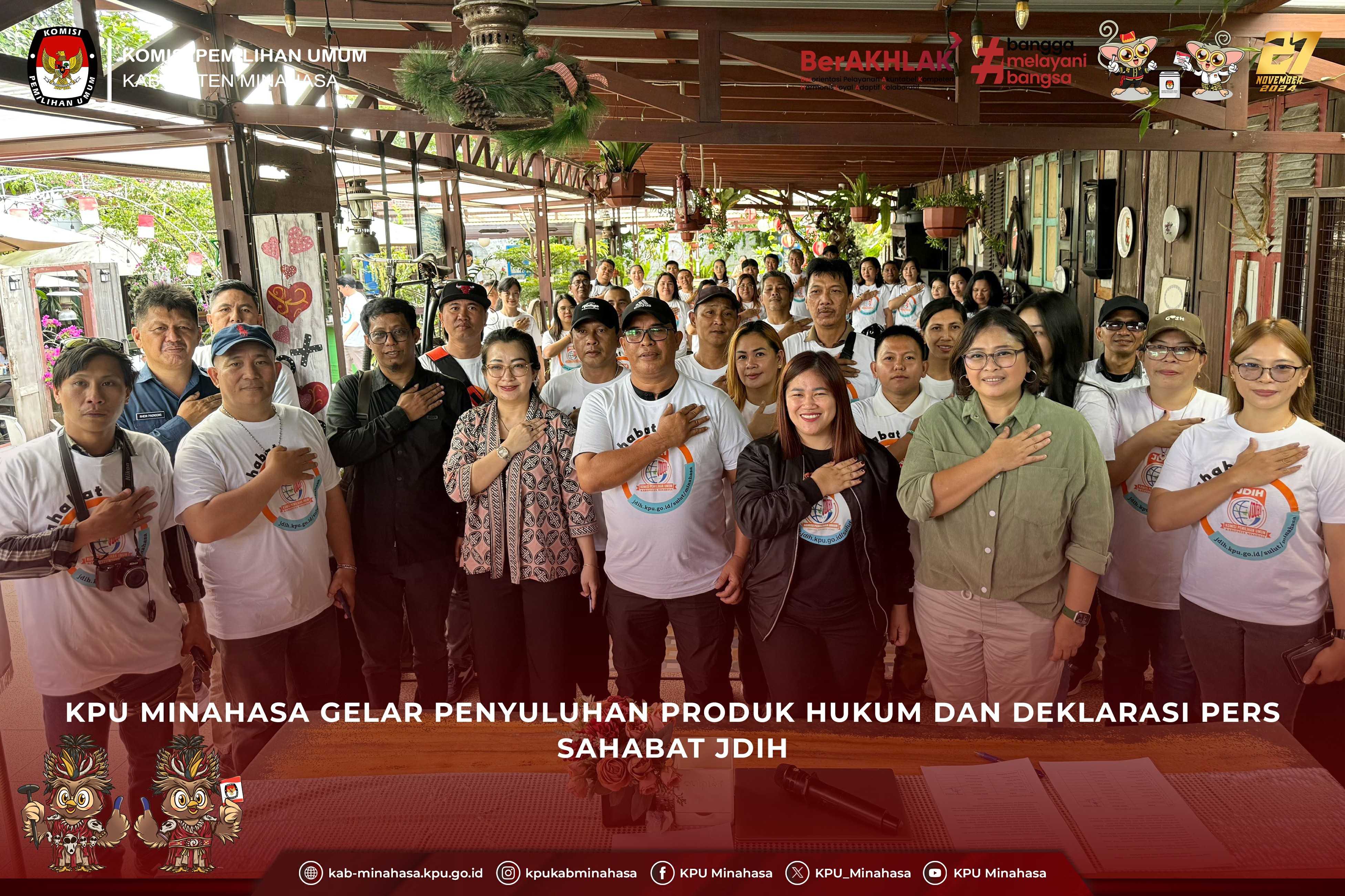 kab-minahasa.kpu.go.id - #TemanPemilih, Dalam rangka meningkatkan wawasan mengenai Produk Hukum dan terjalinnya kerjasama dengan Pers, KPU Kabupaten Minahasa menggelar Kegiatan Penyuluhan Produk Hukum dalam Pemilihan Gubernur dan Wakil Gubernur serta Bupati dan Wakil Bupati Kabupaten Minahasa Tahun 2024 yang dirangkaikan dengan Deklarasi Pers Sahabat JDIH KPU Kabupaten Minahasa.