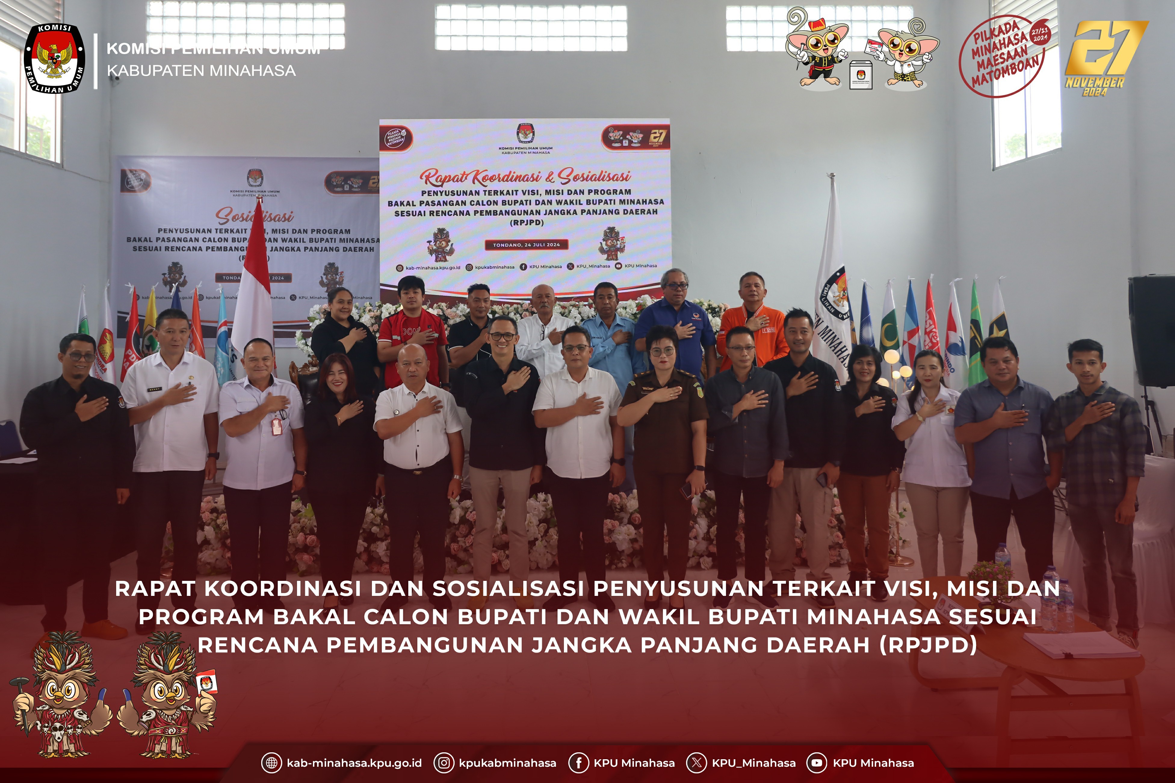 kab-minahasa.kpu.go.id - #TemanPemilih, KPU Minahasa langsungkan kegiatan Rapat Koordinasi dan Sosialisasi Penyusunan Terkait Visi, Misi dan Program Bakal Pasangan Calon Bupati dan Wakil Bupati Minahasa Sesuai Rancangan Pembangunan Angka Panjang Daerah (RPJPD) pada Rabu, 24 Juli 2024 di Gedung Maesaan KPU Minahasa.