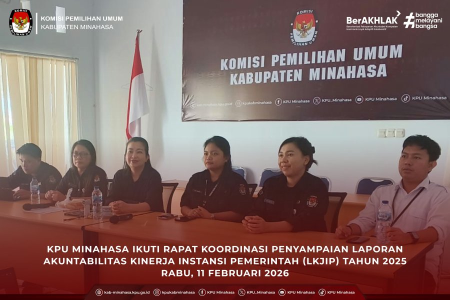 KPU Kabupaten Minahasa ikuti Rapat Koordinasi Penyampaian Laporan Akuntabilitas Kinerja Instansi Pemerintah (LKJIP) Tahun 2025 serta Pelaksanaan Reformasi Birokrasi Tahun 2026 yang digelar secara daring antara KPU Provinsi Sulawesi Utara bersama KPU Kabupaten/Kota se-Provinsi Sulawesi Utara pada Rabu (11/02/2026).