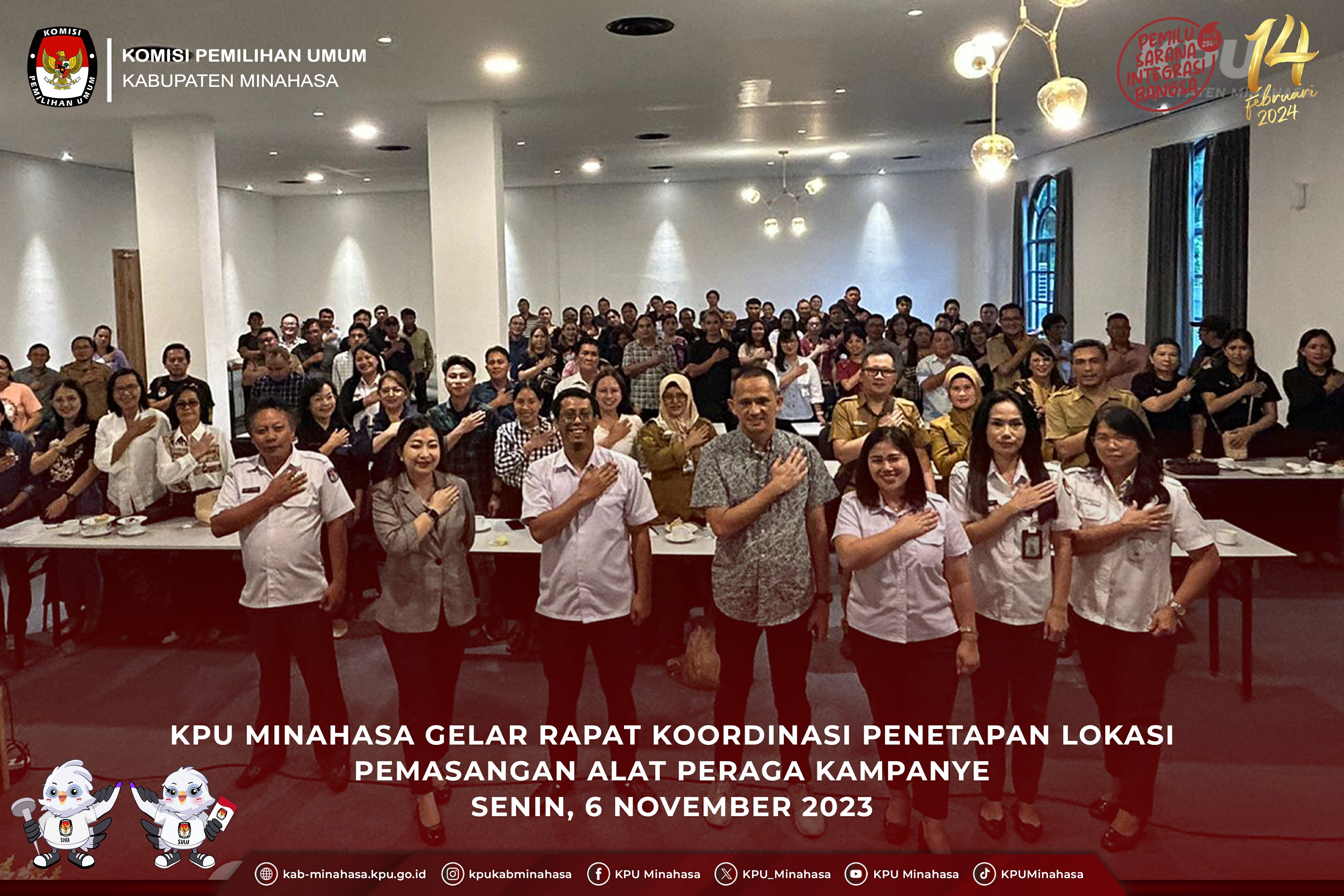 #TemanPemilih, KPU Kabupaten Minahasa menggelar Rapat Koordinasi Penetapan Lokasi Pemasangan Alat Peraga Kampanye bersama dengan PPK se-Kabupaten Minahasa bertempat di Hotel Yama Resort, Tondano pada Senin, 6 November 2023.
