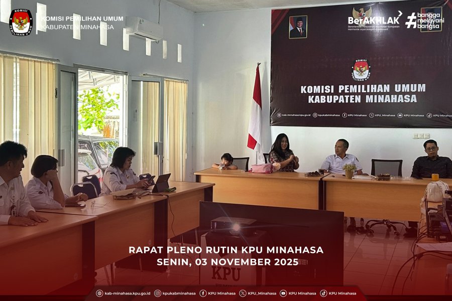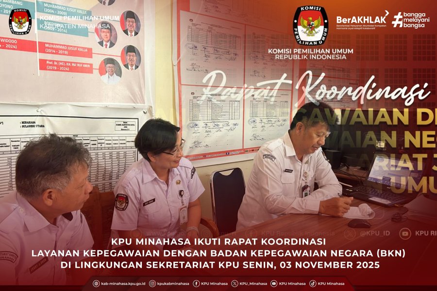 KPU Minahasa mengikuti Rapat Koordinasi Layanan Kepegawaian dengan Badan Kepegawaian Negara (BKN) di Lingkungan Sekretariat KPU yang diselenggarakan secara daring oleh Sekretariat Jenderal KPU RI pada Senin (03/11/2025).