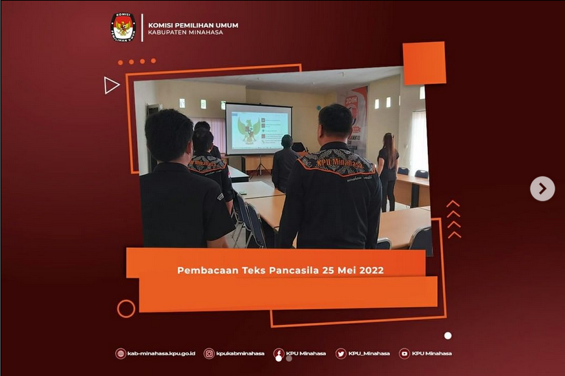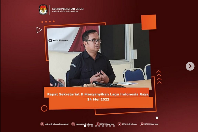 #TemanPemilih, Rapat Sekretariat KPU Kab.Minahasa merupakan bagian dari proses koordinasi lembaga dan penyampaian instruksi pimpinan terhadap jajarannya. Pada hari Selasa, 24 Mei 2022, Sekretariat KPU Kab. Minahasa melaksanakan rapat di ruang Rapat KPU Kab. Minahasa. Dalam rapat ini dihadiri oleh Plh. Sekretaris dan Kasubbag Teknis Penyelenggara Pemilu, Partisipasi dan Hubungan Masyarakat; Yohanes Pahargyo, para Kasubbag serta Staf ASN dan PPNPN KPU Kab. Minahasa. Rapat dibuka dengan doa, kemudian dilanjutkan oleh Yohanes Pahargyo selaku pemimpin rapat. Beliau menyampaikan bahwa rapat dilaksanakan untuk mengevaluasi kinerja di sepanjang minggu yang lalu, serta membahas agenda yang akan dilaksanakan untuk minggu ini. Adapun dalam rapat ini, Yohanes Pahargyo selaku pemimpin rapat menegaskan untuk selalu menjaga kedisiplinan diri. Demikian tegas beliau. Selesai Rapat Sekretariat KPU Kab. Minahasa kemudian dirangkaikan dengan menyanyikan lagu Kebangsaan Indonesia Raya. Menyanyikan lagu Kebangsaan Indonesia Raya merupakan kegiatan kelembagaan untuk menunjang kegiatan SDM dan untuk membangun karakter yang nasionalis dan berwawasan kebangsaan. Untuk hari Selasa, 24 Mei 2022 dipimpin oleh Plh. Ketua KPU Minahasa; Kristoforus Ngantung dan diikuti oleh seluruh jajaran KPU Kab. Minahasa. #KPUMelayani #PemiluSerentak2024