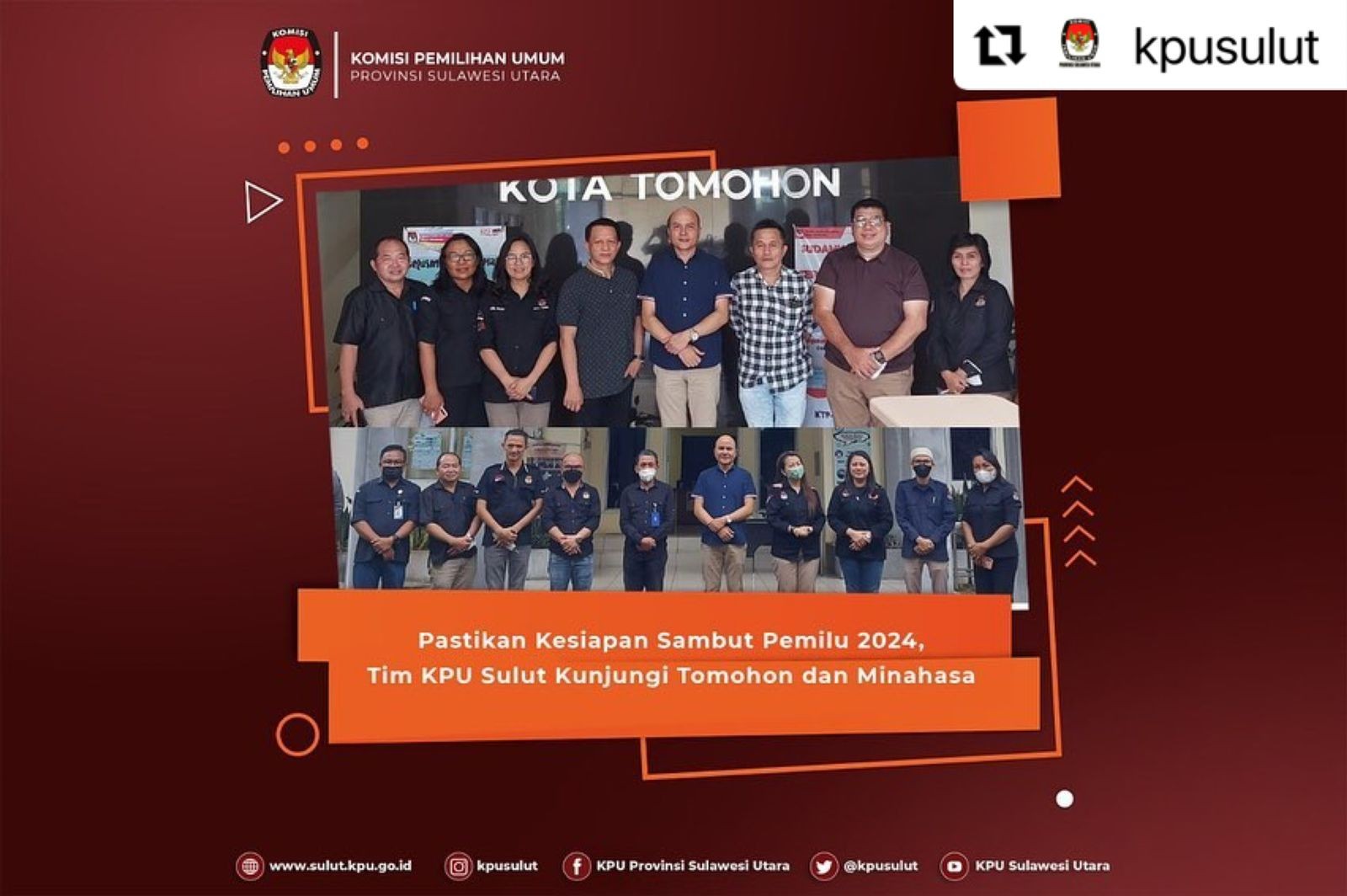 #Repost @kpusulut #TemanPemilih sulut.kpu.go.id – KPU Kota Tomohon dan Kabupaten Minahasa mendapatkan kunjungan dari Tim Monitoring Kesiapan Tahapan Pemilu 2024 KPU Sulut, 10-11 Mei 2022. Tim yang dipimpin Anggota KPU Sulut, Meidy Tinangon didampingi Kabag Keuangan, Umum dan Logistik, Meidy Malonda terlebih dahulu mengunjungi KPU Kota Tomohon, kemudian dilanjutkan ke KPU Minahasa. Di Tomohon, Tim diterima Ketua KPU Tomohon, Haryanto Lasut dan jajaran. Sedangkan di Minahasa, Tim diterima Plh. Ketua KPU Minahasa, Kristoforus Ngantung dan jajaran. Di kedua lokasi tersebut Tim melakukan pengecekan terkait kesiapan SDM, mekanisme perencanaan, tata kelola keuangan serta pelaksanaan pengendalian internal. Disiplin jajaran komisioner dan sekretariat tak luput dari perhatian Tim. Anggota KPU Sulut, Meidy Tinangon meminta jajaran KPU Tomohon dan Minahasa untuk melakukan pembenahan-pembenahan dalam manajemen SDM, tertib pengelolaan program dan anggaran, pelaksanaan renstra dan perjanjian kinerja serta mengoptimalkan sistem pengendalian internal. "Hal-hal terkait administrasi dan manajemen SDM, program dan anggaran serta pengendalian internal akan sangat berperan penting dalam suksesnya tahapan pemilu 2024. Karena itu, hal-hal itu sebelum tahapan dimulai harus disiapkan," ungkap Tinangon. Tinangon juga meminta komisioner maupun sekretariat agar fokus dan konsisten bekerja melaksanakan tupoksi masing-masing. #KPUMelayani #PemiluSerentak2024