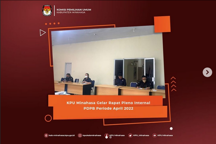 Memperhatikan Peraturan Komisi Pemilihan Umum Nomor 6 Tahun 2021 tentang Pemutakhiran Data Pemilih Berkelanjutan, maka pada hari Selasa, 26 April 2022 KPU Kabupaten Minahasa melaksanakan kegiatan Rapat Pleno Rekapitulasi PDPB Periode Bulan April 2022.