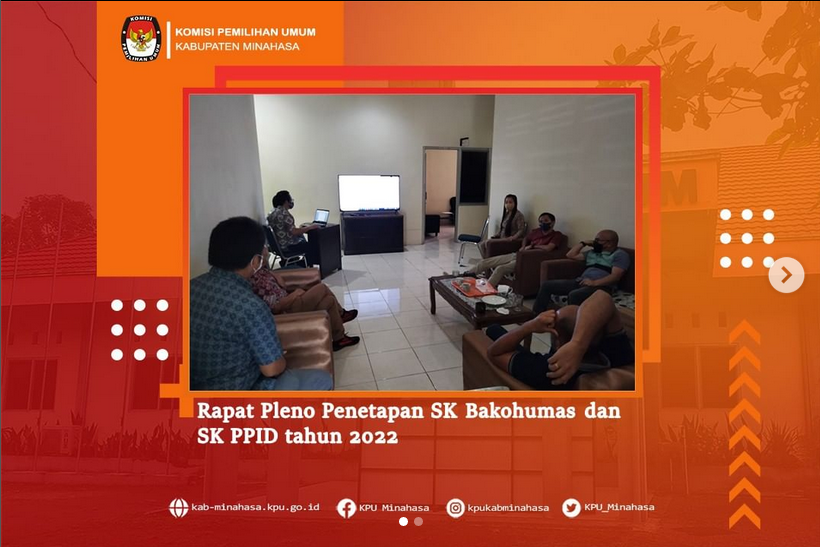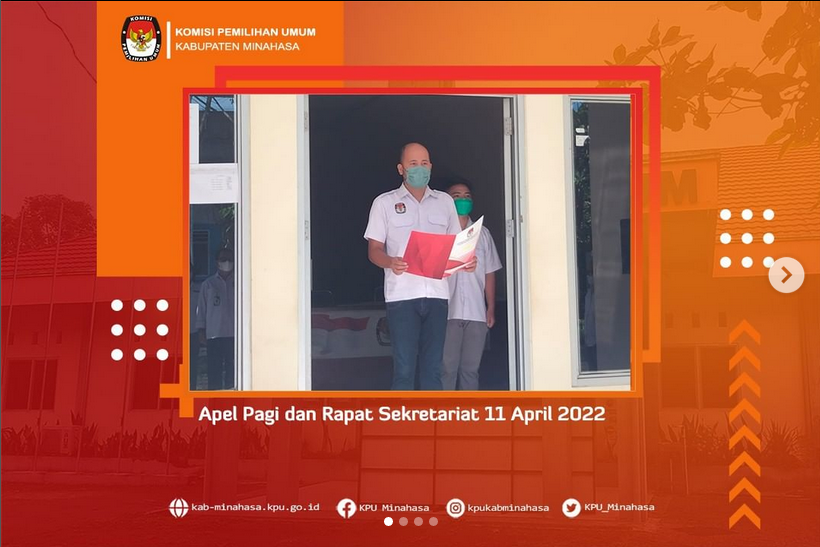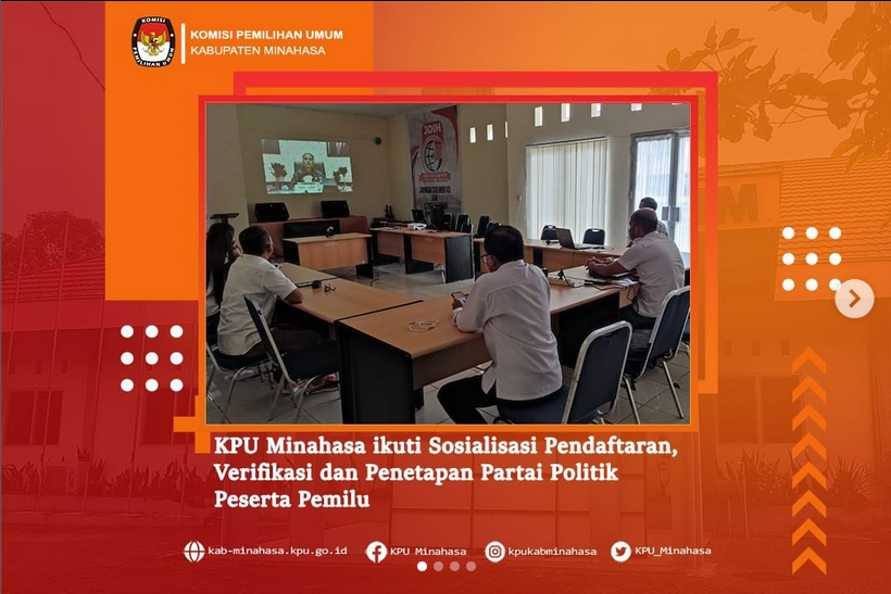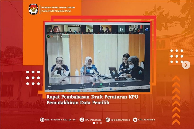 #TemanPemilih, KPU Kabupaten Minahasa Ketua Lord A. Ch. E. Malonda bersama Anggota masing-masing Kristoforus Ngantung, Peter Maweikere, Rendy Suawa, Lidya A. Malonda, Plt. Sekretaris Raymond Mamahit mengikuti kegiatan “Sosialisasi Rancangan PKPU Pendaftaran, Verifikasi dan Penetapan Partai Politik Peserta Pemilu” yang digelar oleh Direktorat Jendral (Ditjen) Polpum (Politik dan Pemilihan Umum) Kementerian Dalam Negeri secara Virtual pada Kamis (7/4/2022).