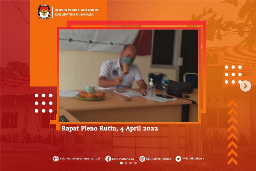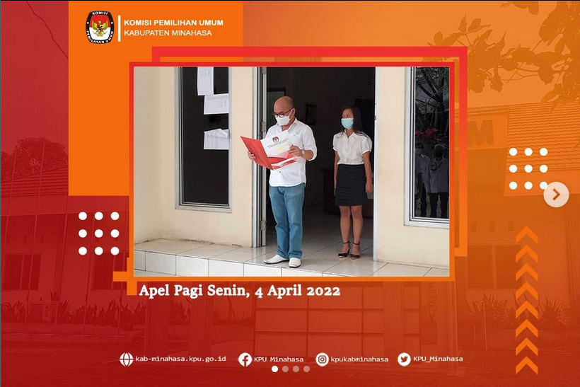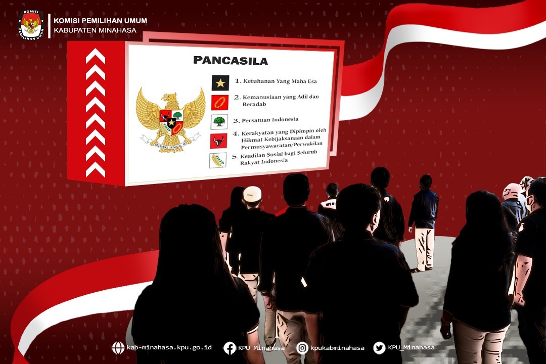#TemanPemilih, KPU Kabupaten Minahasa hari Rabu, 6 April 2022 tepat jam 10.00 Wita selalu melantangkan teks Pancasila secara bersama-sama. Kali ini dipimpin oleh Plt. Sekretaris KPU Kabupaten Minahasa; Raymond F. Mamahit, SE.,Ak. dan diikuti oleh semua peserta. Peserta sebagaimana biasanya terdiri dari Komisioner, para Kepala Sub Bagian, para staf pelaksana dan staf PPNPN di jajaran Komisi Pemilihan Umum Kabupaten Minahasa. Disamping memenuhi himbauan KPU RI yang tertuang dalam surat nomor: 604/SDM.03.5-SD/05/KPU/VI/2021, pembacaan teks Pancasila secara rutin sebagai bentuk nyata internalisasi makna Pancasila sebagai pandangan hidup bangsa. Dikutip dari laman resmi Badan Pembinaan Ideologi Pancasila (BPIP), makna Pancasila sebagai Pandangan Hidup Bangsa Indonesia antara lain: Ketuhanan Yang Maha Esa Pancasila memberi pandangan bahwa sebagai warga negara Indonesia terdapat nilai untuk mempercayai dan bertakwa pada Tuhan sesuai dengan agama dan kepercayaan yang dimiliki oleh masing-masing serta harus saling menghormati antar umat beragama agar tercipta kehidupan yang rukun dan damai. Kemanusiaan Yang Adil Dan Beradab Pancasila sebagai pandangan hidup tercantum pada sila kedua yang memberi makna bahwa sebagai warga negara Indonesia diminta untuk memahami bahwa setiap manusia memiliki derajat yang sama, sehingga harus saling bersimpati satu sama lain. Hal itu bisa dicapai dengan cara menjaga dan membantu sesama, membela kebenaran dan keadilan, dan bekerjasama untuk kedamaian negara. Persatuan Indonesia Sebagai negara dengan ragam pulau, suku, dan budaya, pada sila ketiga, fungsi Pancasila pada sila ketiga memberi pandangan hidup bahwa yang harus diutamakan adalah kesatuan, persatuan, dan kepentingan negara daripada kepentingan masing-masing. Setiap warga negara Indonesia juga harus memiliki kepribadian yang rela berkorban demi negara Indonesia, mencintai bangsa Indonesia dan tanah air, serta bangga pada negara. Kerakyatan yang Dipimpin Oleh Hikmat dan Kebijaksanaan dalam Permusyawaratan Perwakilan Sila keempat menegaskan bahwa fungsi Pancasila sebagai pandangan hidup turut mengajak setiap warga negara untuk tidak memaksakan kehendaknya pada orang lain dan mengutamakan kepentingan negara. Meski terkadang muncul perbedaan pendapat dan cara pandang, namun sila keempat menegaskan akan pentingnya bermusyawarah untuk mencapai mufakat. Keadilan Sosial Bagi Seluruh Rakyat Indonesia Fungsi Pancasila sebagai pandangan hidup bangsa yang tercermin dari sila ini yang memiliki makna tentang mengembangkan perbuatan luhur dengan cara kekeluargaan dan gotong royong. Tak hanya itu, setiap warga negara juga harus selalu bersikap adil, dan memahami antara hak dan kewajiban agar bisa menghormati hak-hak orang lain sesama bangsa Indonesia. Sumber: (https://bpip.go.id/berita/1035/814/fungsi-pancasila-sebagai-pandangan-hidup-bangsa-begini-penjelasannya.html) KPU Kabupaten Minahasa merupakan kesatuan penyelenggara Pemilu dan Pemilihan secara nasional, tetap dan mandiri dalam bingkai NKRI. Hal inilah yang membuat seluruh jajaran selalu menggali makna Pancasila sebagai pandangan hidup bangsa untuk diterapkan dalam kehidupan sehari-hari dan dalam menjalankan tugas pokok dan fungsi sebagai penyelenggara Pemilu dan Pemilihan. Perlu diketahui oleh #TemanPemilih, KPU Kabupaten Minahasa memiliki wilayah yang terdiri dari 25 Kecamatan, 270 Desa/Kelurahan. Luas wilayah ini mempunyai penduduk sejumlah 343.800 jiwa dan 248 ribu pemilih. Melihat cakupan wilayahnya KPU Kabupaten Minahasa beserta jajarannya perlu senantiasa menghidupi makna Pancasila karena penduduk Kabupaten Minahasa terdiri dari berbagai macam suku maupun etnik.