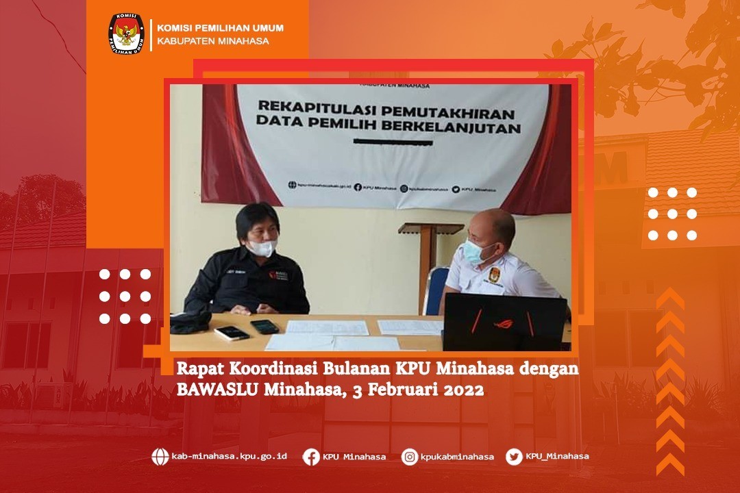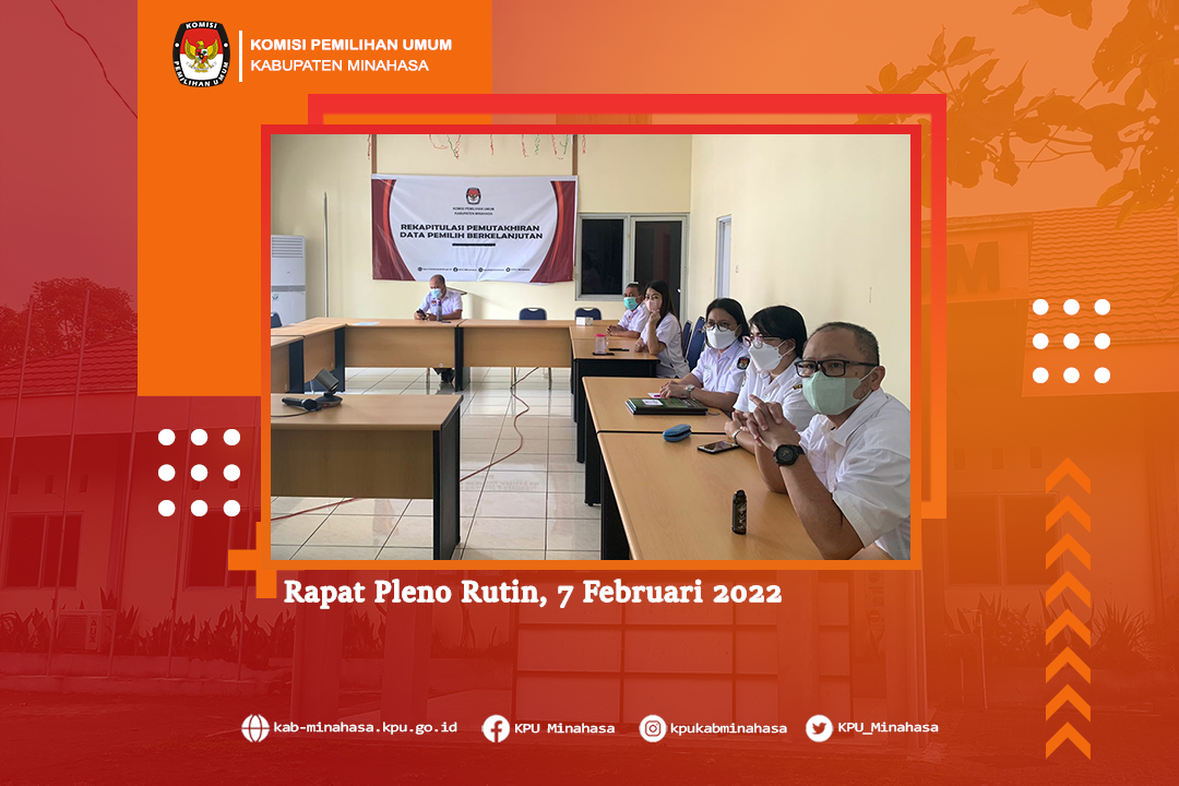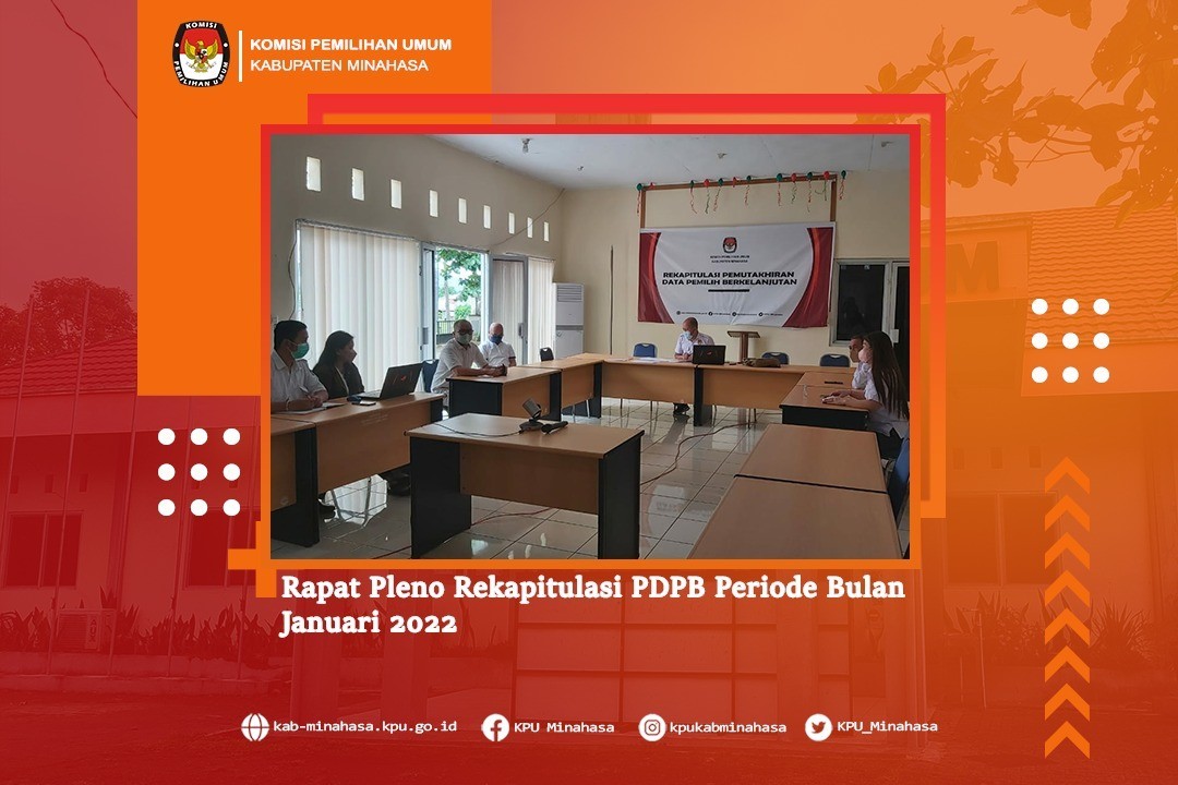 #temanpemilih Memperhatikan Peraturan Komisi Pemilihan Umum Nomor 6 Tahun 2021 tentang Pemutakhiran Data Pemilih Berkelanjutan, maka pada hari Kamis, 3 Februari 2022 KPU Kabupaten Minahasa melaksanakan kegiatan Rapat Pleno Rekapitulasi PDPB Periode Bulan Januari 2022. Kegiatan dibuka oleh Ketua KPU Kabupaten Minahasa, Lord A. Malonda, dihadiri oleh Ketua Divisi Perencanaan Data dan Informasi, Lidya A. Malonda, Ketua Divisi Sosdiklih Parmas dan SDM, Peter Maweikere, Ketua Divisi Teknis Penyelenggaraan; Kristoforus Ngantung, Plh. Sekretaris KPU Kabupaten Minahasa; Sheilla Warouw, Kasubbag Program dan Data; Jan Ch. Kumaunang, Plt. Kasubbag Hukum; Jimmy Lucas, Plt. Kasubbag Tekmas; Rouna Rompas dan staf Divisi Data; Surya Darma dan Alindri Podo. Dalam kegiatan ini, Ketua KPU Kabupaten Minahasa menyampaikan terkait dengan pemutakhiran data pemilih berkelanjutan yakni Pemilih Tidak Memenuhi Syarat, Pemilih Baru dan pemilih ubah data periode Januari 2022.