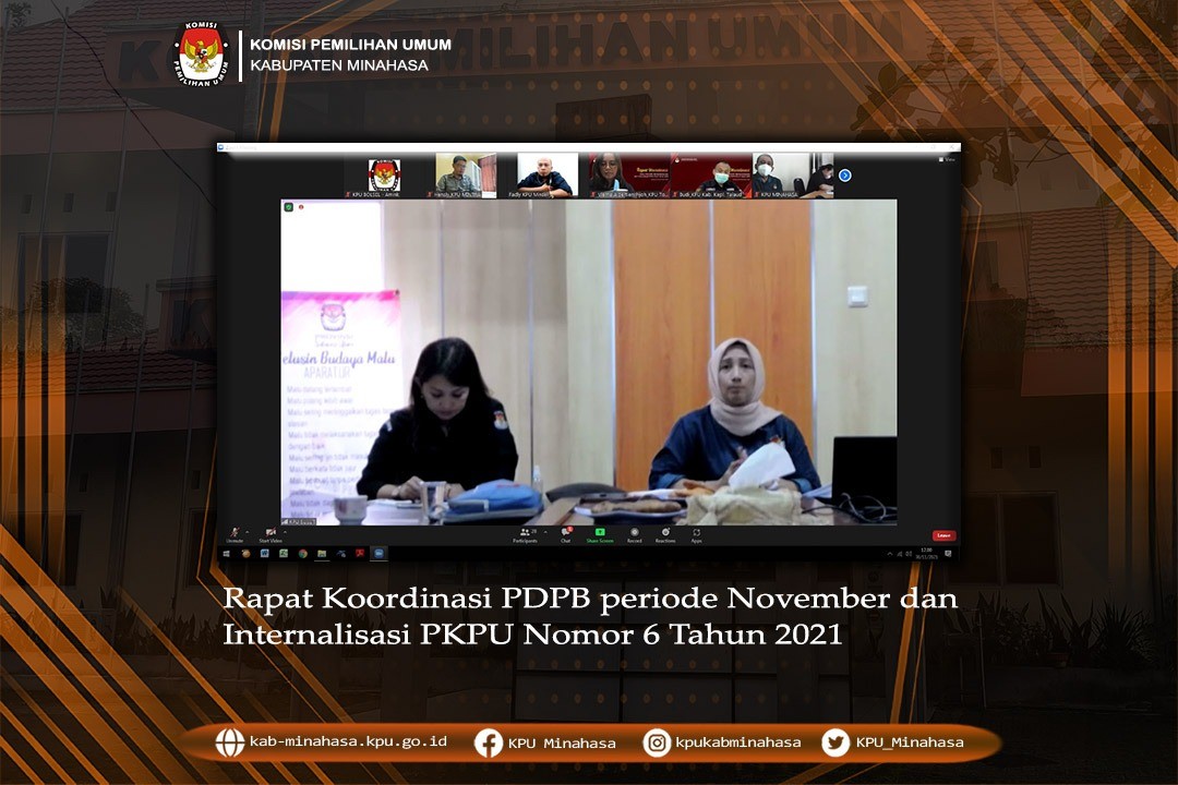 Rabu, 24 November 2021 pukul 14.30 WITA KPU Minahasa, Lord A.Ch. Malonda (Ketua), Divisi Teknis Penyelenggaraan (Divisi terkait) Kristoforus Ngantung (Anggota), Peter Maweikere (Anggota), Rendy Suawa (Anggota), Lidya A. Malonda (Anggota), Rouna Rompas (Plt. Kasubbag Tekmas) kembali mengikuti kegiatan Rapat Koordinasi Sesi III Berbagi Pengalaman Penggunaan SIREKAP pada Pemilu Tahun 2020 yang diselenggarakan secara daring oleh KPU RI. Moderator dalam Rakornas kali ini oleh Kepala Biro Teknis Penyelenggaraan Pemilu; Ibu Melgia Carolina Van Harling, dan acara dibuka oleh Anggota KPU RI Divisi Teknis Penyelenggaraan Pemilu; Ibu Evi Novida Ginting Manik dalam sambutannya menegaskan bahwa kegiatan ini merupakan salah satu cara dalam mempersiapkan pelaksanaan Pemilihan selanjutnya, dengan sharing berbagi pengalaman penggunaan Sirekap. Narasumber kali ini menghadirkan 3 (tiga) Kabupaten/Kota, yaitu Kabupaten Gowa; Muh. Natsir, KPU Kabupaten Tabanan; Luh Made Sunadi dan KPU Kabupaten Indramayu; H. Fahmi Labib yang membagikan pengalaman penggunaan Sirekap pada Pemilihan Tahun 2020, sebagai bahan untuk evaluasi terhadap kendala di lapangan untuk perbaikan Sirekap Pemilu dan Pemilihan 2024 mendatang. Menutup kegiatan ini Ibu Evi Novida Ginting Manik memberikan apresiasi atas partisipasi dari kabupaten/kota yang telah membagi pengalaman bagaimana kepemimpinan,manajemen serta strategi-strategi yang dijalankan dalam proses penerapan Sirekap, diharapkan pada Pemilu 2024 sudah mampu dan paham akan penggunaan Sirekap.