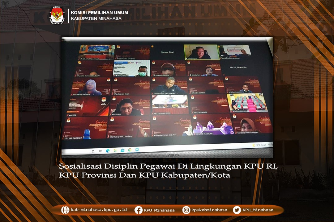 KPU Kabupaten Minahasa dalam hal ini Sekretaris Meidy R. Malonda mengikuti Sosialisasi Disiplin Pegawai yang diselenggarakan oleh KPU RI pada hari Selasa, 12 Oktober 2021 melalui media daring Zoom Cloud Meeting, sesuai surat undangan KPU RI Nomor : Nomor 906/SDM.03.6/04/2021. Kegiatan sosialisasi ini menghadirkan narasumber dari BKN. Pada kesempatan tersebut oleh Narasumber dari BKN Farhan menyampaikan terkait ketentuan PP 94 Tahun 2021 tentang Disiplin Pegawai Negeri Sipil (PNS) yang merupakan aturan perubahan dari PP No 53 Tahun 2010 yang mengatur kewajiban PNS yang wajib melaporkan harta kekayaannya, memberikan kesempatan kepada bawahan mengembangkan kompetensinya, larangan PNS untuk mendukung salah satu pasangan calon dalam Pemilu maupun Pemilihan. Farhan menjelaskan pelanggaran yang dilakukan oleh PNS bisa dijatuhi sanksi diberhentikan dengan hormat maupun diberhentikan secara tidak hormat berdasarkan jenis pelanggaran yang dilakukan. Kepala Biro SDM KPU Wahyu Yudi Wijayanti dalam arahan menyampaikan bahwa sosialisasi PP Nomor 94 Tahun 2021 tentang Disiplin Pegawai Negeri Sipil bertujuan untuk memberikan pemahaman dan upaya meningkatkan kesadaran dan kesanggupan PNS Sekretariat KPU agar taat terhadap kewajiban dan mampu menghindari setiap larangan sesuai ketentuan yang berlaku. Menurutnya PP 94 Tahun 2021 ini harus diketahui, dipahami dan dilaksanakan oleh seluruh PNS dilingkungan Sekretariat KPU, karena memuat kewajiban, larangan, dan hukuman disiplin. Tentunya terhadap hukuman disiplin ini dapat dijatuhkan kepada PNS yang terbukti melakukan pelanggaran. Serta penegakan disiplin PNS, yang bukan hanya menjadi tanggungjawab Bagian SDM atau Sekretaris saja, tetapi upaya menegakkan disiplin harus menjadi tanggungjawab seluruh PNS. Dengan harapan juga agar Sekretaris KPU Provinsi dan KPU Kab/Kota melakukan sosialisasi PP Nomor 94 Tahun 2021 di satkernya masing masing.