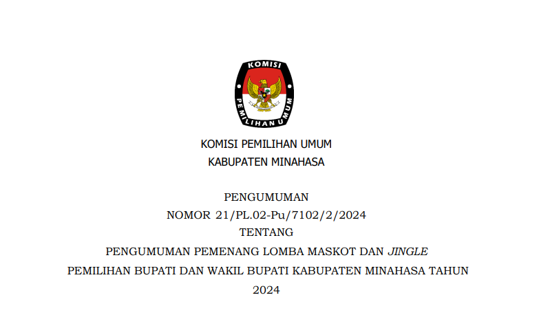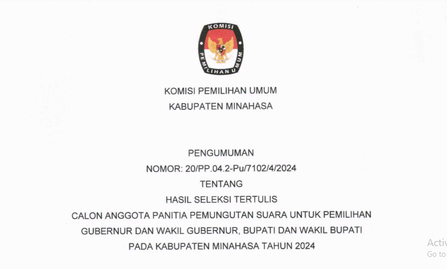 kab-minahasa.kpu.go.id - #TemanPemilih, Berikut adalah Pengumuman Nomor 20/PP.04.2-Pu/7102/4/2024 Tentang Hasil Seleksi Tertulis Calon Anggota Panitia Pemungutan Suara untuk Pemilihan Gubernur dan Wakil Gubernur, Bupati dan Wakil Bupati Pada Kabupaten Minahasa Tahun 2024.